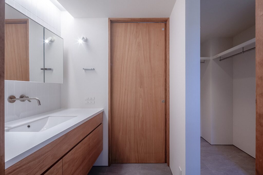 洗面と脱衣所を分けたことで、家族が同時に使いやすく、来客時も洗面だけ使ってもらいやすいのも気に入っています。
